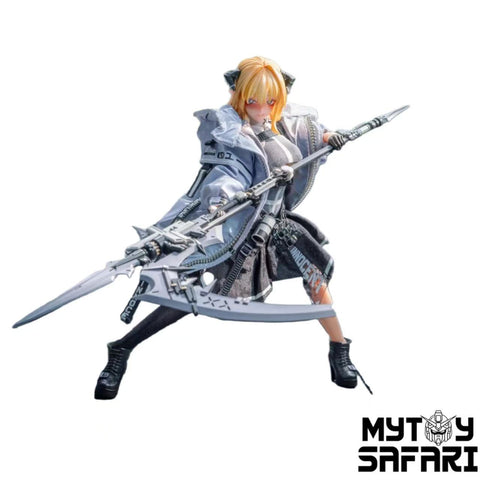 Status: 2025-2 In stock.  Parameters: Category Action Figure Universe Original Producer HASUKI  Size / Scale 15.5cm / 6.1'' The whole set includes: - Main figure body- Head sculpture- White shirt- Necktie- Black shorts- Leather skirt- 2 Black stockings- Interchangeable front hair- Main body clothing- 2 Poseable eye interchangeable faces, including the original (calm, combat)- 2 Interchangeable faces (smiling, surprised)- 6 Interchangeable glove hand types, including the original (fist, holding 1, holding 2, holding 3, relaxed, pointing)- Rose- Dragon bone shield- Knight's sword- Magnetically controlled lantern- Shoes- Eyeball adjuster- Transparent stand